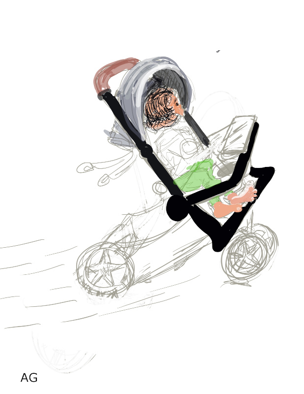 While I was in the waiting room, I quietly drew the Stroller that was there. The child and the stroller didn't stay still for me because nobody knew I was drawing it. So it's partially 'draw what you see' and partially 'stylize'.