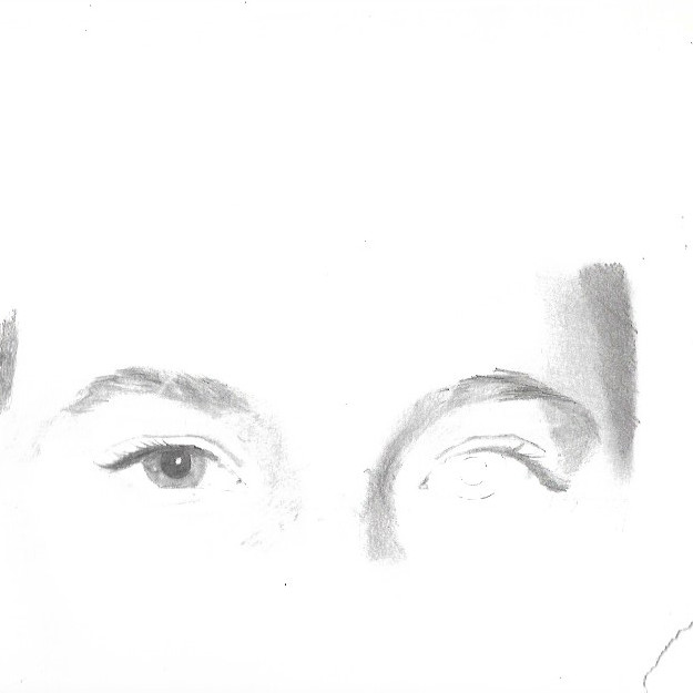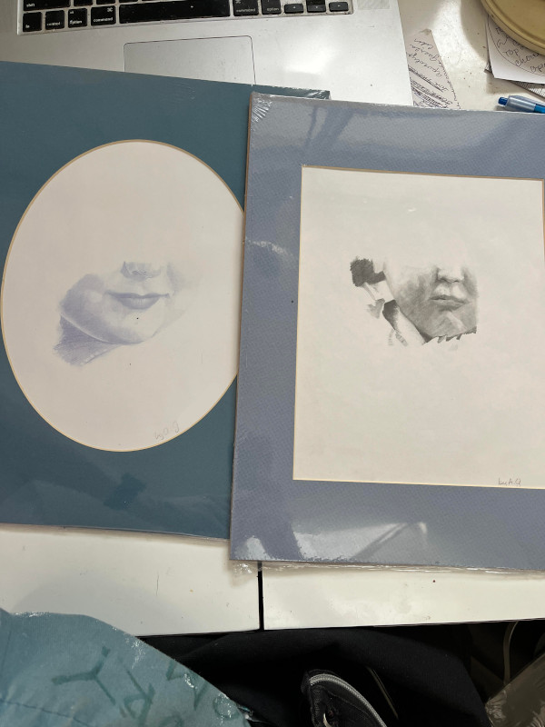 Here you see a few of the partial pencil portraits that she made a long time ago. Even at that time, the partiality of the framed ones were On Purpose. Focusing on just a Part makes it's own picture. It's own statement.